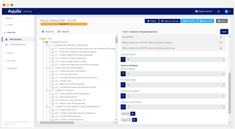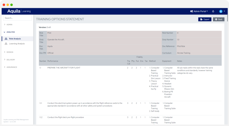 Easily analyse training methods, media, fidelity, environmental factors and cost to meet your requirements.